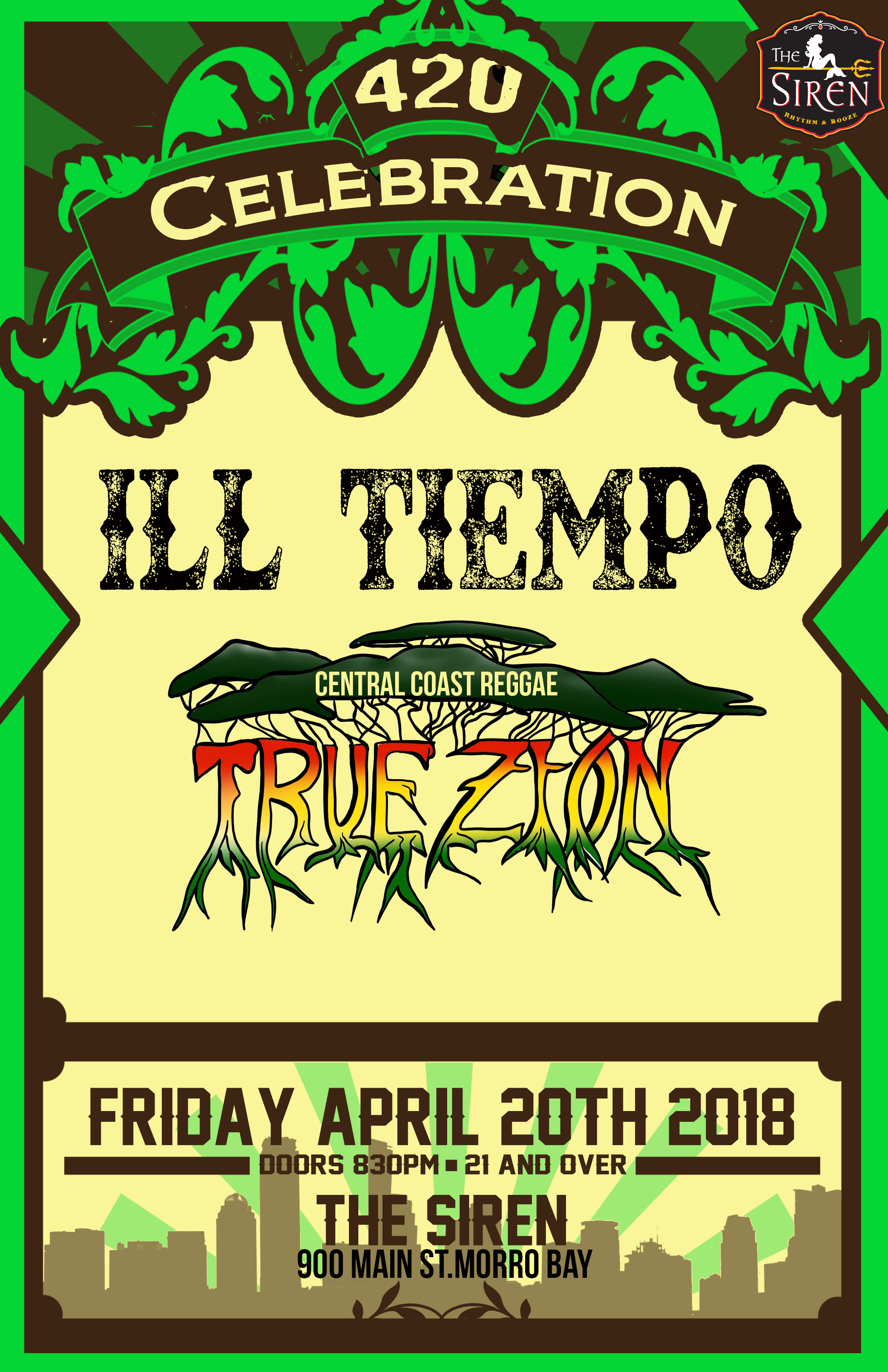 Come get Irie with us and celebrate 420 and our beautiful mother earth! We’ve got some sick reggae rock, good vibes and good times ahead with us all night long! We’re stoked to have Ill Tiempo from the central valley for their first time playing in Morro Bay with their unique mix of Bandito Music. Rock, Reggae, Hip hop, Ska, Thrash/ Punk,..Oh,and a splash of Tapatio!