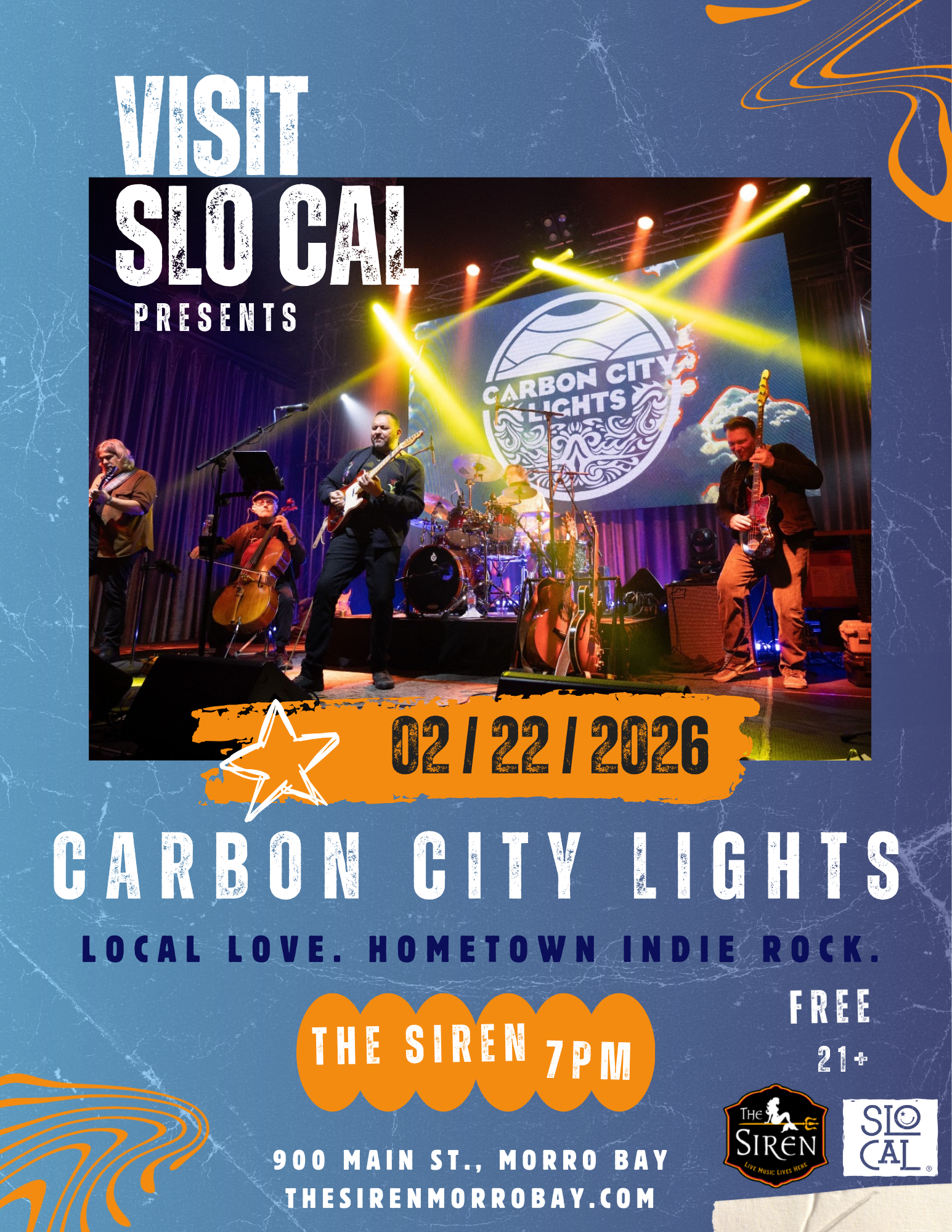 Carbon City Lights is an indie alt-rock band based in San Luis Obispo, California. Lead singer, Michael Venia, fronts Carbon City Lights with a distinct vocal style defined by powerful vocals and a soaring falsetto that earned him a spot as a contestant on Season 21 of NBC’s show, The Voice. His writing leans into honesty & vulnerability, drawing on themes of life, loss, & love, shaped in part by stories from his Middle Eastern upbringing. On stage, the band delivers dynamic live performances that move between high energy alt rock jams with rocking cello & intimate ballads. In 2024, they earned New Times Music Awards for best live performance & best alt rock song for their single, Sky Blue, which has amassed over a quarter million streams.