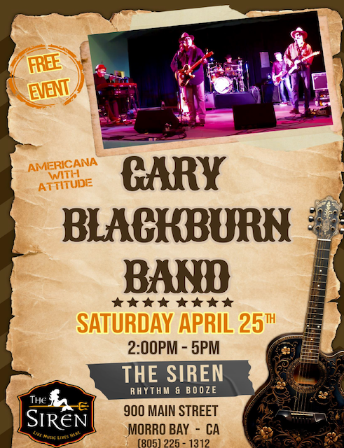 Gary Blackburn Band based in Santa Cruz, CA., and the Monterey Bay brings their high energy roots rock based in the Rock, Country, Blues genres. The Gary Blackburn Band currently performs at music venues up and down the Central Coast and Bay Area, blending old school with contemporary, the band will weave a musical journey up on the stage, and you will be dancing! Fronted by Santa Cruz local, and celebrated veteran singer songwriter, Gary Blackburn, the band performs familiar rocking covers along with a few of Gary’s originals. You can hear one of Gary’s country tunes, “Carolina” on KPIG 107.5 Freedom, CA. &  KPYG 94.9 FM Cayucos, CA. With Gary on guitar and lead vocals, the band also features, Sean Woodward, lead guitar, mandolin, backing vocals, Kevin Taylor, keyboards, backing vocals, Dan Waller, bass,backing vocals, and Tom Duncan, drums. The Gary Blackburn Band brings it y’all, come have some fun!