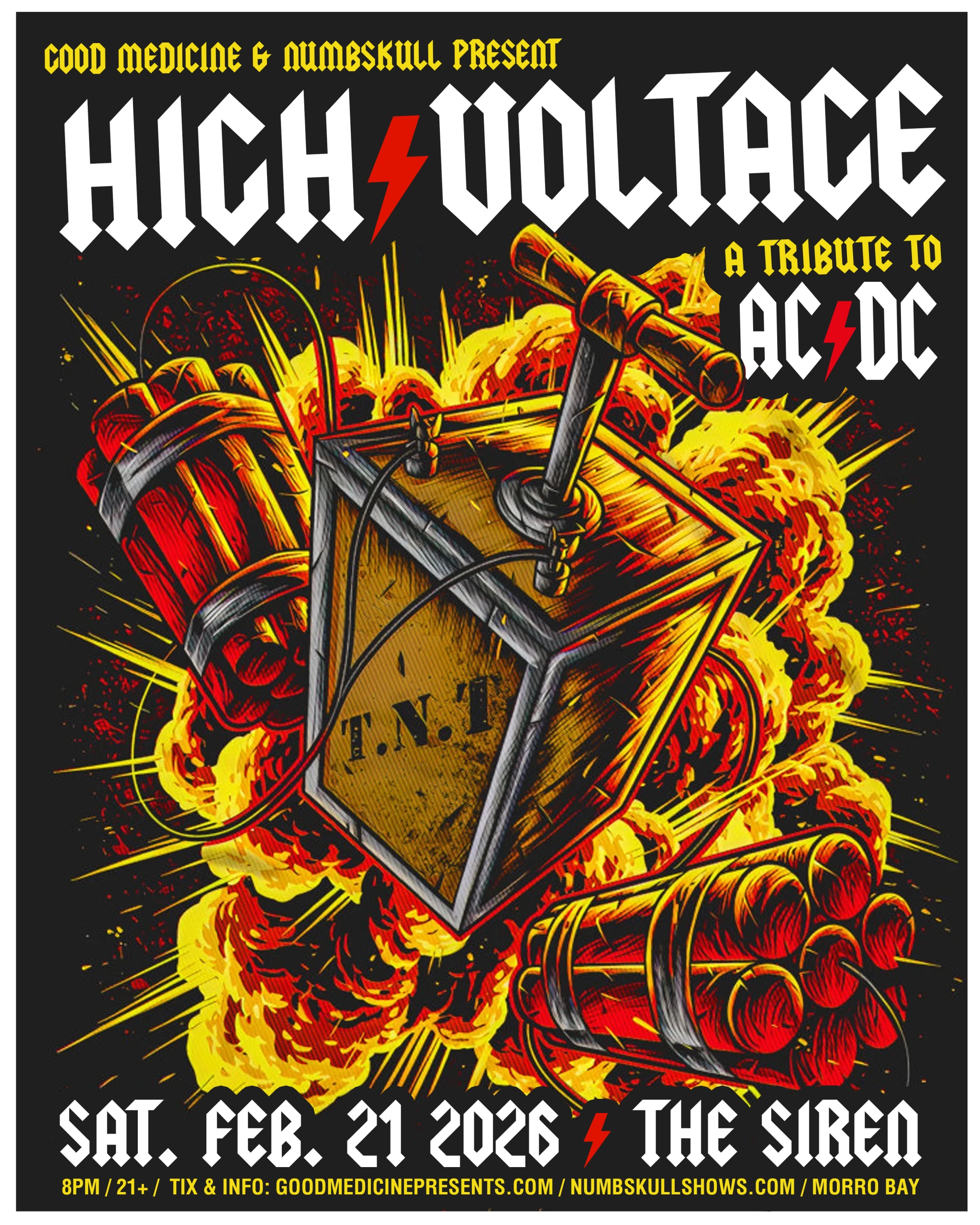 High Voltage – A Tribute to AC/DC has been playing sold out shows throughout California since 2010. High Voltage has a well-deserved reputation as the premier high energy, authentic AC/DC tribute act. Our current lineup includes Brian Donson on vocals. An amazing professional, Brian carries a swagger and commands the stage truly remarkably. RJ Silvas on Lead Guitar. RJ is a great performer and stays true to the legacy that is Angus Young. Andy Shellcross on Bass. Keeping the low end thumping with a keen ear to tone, Andy is a founding member of High Voltage. Tony Tyminski has been perfecting the sound of Malcolm Young since 2007 and has been performing for over 30 years. Ray Rocha on Drums. Ray is a founding member of High Voltage and has been a professional drummer since he was 15 years old. Paul Dunn on Bagpipes. Paul is an integral sixth member. He is also the leader of the Central Coast Pipes and Drums