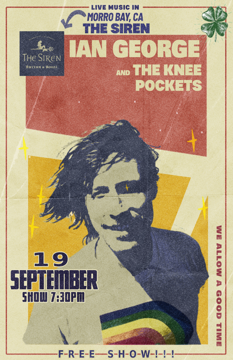 Ian George along with his gorgeous band The Knee Pockets (talented, ferocious young men) have one motive : ALLOW A GOOD TIME. The band delivers the sort of concert you’ll likely dance, sway, sing, laugh and maybe even cry(!) to. Yesiredoo, a spontaneous and ferocious musical ride teeming with whimsicality, clever arrangements – interrupted by triumphant tangents – and outlandish solos grounded by George’s gauzy voice and the simple strength of a good song. Expect an engaging and dynamic string of gentle and not so gentle folk-rock adventures.
