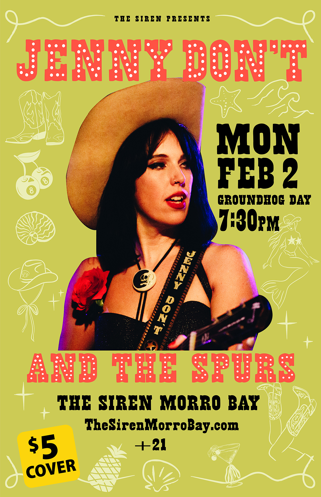 Jenny Don’t & The Spurs for only $6! Table reservations are $50 and include 4 tickets, email monte@thesirenmorrobay.com