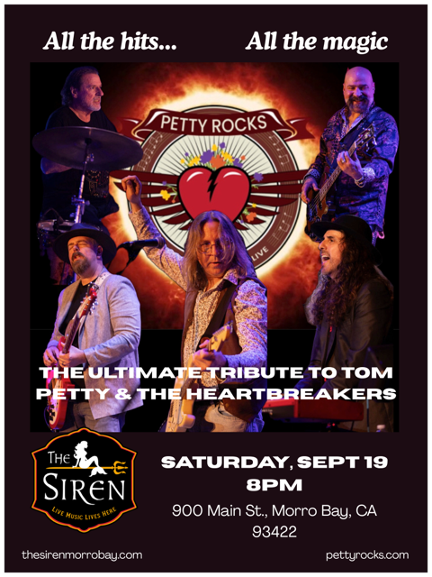 Table reservations $100, email monte@thesirenmorrobay.com PETTY ROCKSÂ is a Northern California based tribute to the music of the one-of-a-kind rock and roll ic...