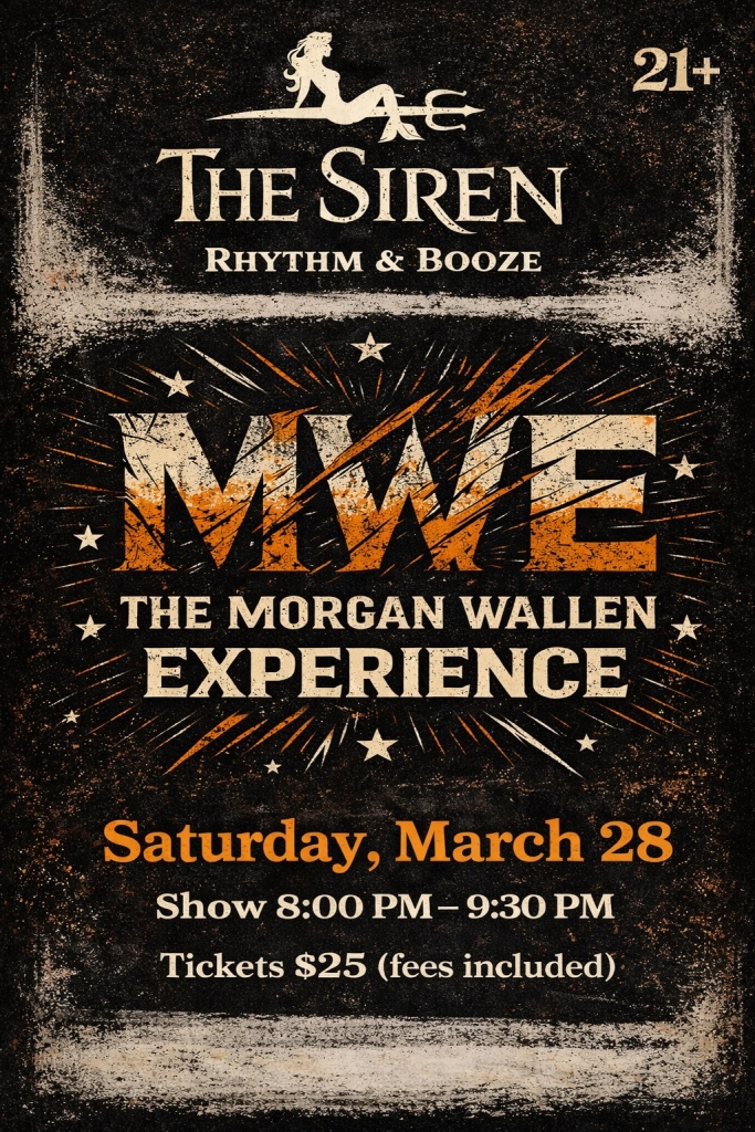 A powerful, live tribute to the music of a modern country icon. Table reservations limited, email monte@thesirenmorrobay.com 🎵Â The Morgan Wallen Phenom...